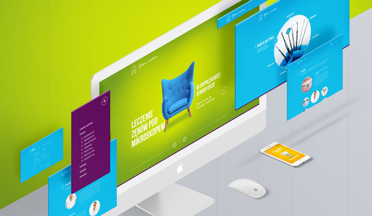 W tym projekcie postawiliśmy na świeżość i żywą kolorystykę, która od razu przykuwa uwagę odwiedzających. Podeszliśmy do tematu w niestandardowy sposób tak by zachęcić klienta do wyboru właśnie tego gabinetu spośród wielu dostępnych na rynku.